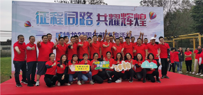 強(qiáng)身健體,增強(qiáng)免疫力是抵抗新冠肺炎的有效手段。新冠疫情尚未結(jié)束,可能還會長期存在,集團(tuán)鼓勵全體員工敬畏生命,加強(qiáng)鍛煉,強(qiáng)健體魄,挑戰(zhàn)自我,放飛夢想;我們共同努力,充分發(fā)揮各自的潛能,把體育競技精神融入日常工作中,奮力拼搏,勇于爭先,超越極限,永不放棄。發(fā)揚體育競技精神,增強(qiáng)規(guī)則意識,努力沖刺全年經(jīng)營目標(biāo)。 董事長帶領(lǐng)各地威特龍人同步開跑 本次活動是威特龍集團(tuán)慶20年華誕系列主題活動的分項活動之一,以“綠色·健康·運動”為宗旨,旨在通過慢跑這一具有青春、活力、健康的運動方式達(dá)到強(qiáng)健身心、提升員工身體素質(zhì)、增強(qiáng)團(tuán)隊意識和團(tuán)隊凝聚力的作用。 歡呼吶喊是恣意青春活力與熱度 各團(tuán)體奮勇爭先,如離弦之箭般飛奔向前,帶起一陣疾風(fēng)和揮灑而出的汗水。男將雄姿勃發(fā),女將英姿颯爽,引起拉拉隊員一陣蓋過一陣的歡呼和吶喊。眾多趣味游戲更是妙趣橫生,讓人忍俊不禁,捧腹大笑。活動現(xiàn)場氣氛熱烈又井然有序,揮散了瑟瑟秋風(fēng)帶來的涼意,彌漫著恣意青春的活力與熱度。 奔跑不只是一種運動健康的方式,更是積極向上挑戰(zhàn)自我的最佳體現(xiàn)。威特龍人跑出自信,跑出快樂,跑出友誼,跑出健康!