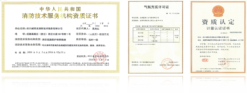 氣瓶充裝許可證 | 特種設(shè)備檢驗檢測機構(gòu)核準(zhǔn)證(氣瓶檢驗機構(gòu)) | 危化品經(jīng)營許可證 |